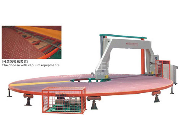 本機采用當前最先進的進口變頻調速控制技術驅動,全數字控制,切割精確,可靠性高,本機主要用于多個方泡泡綿的一次性水平切片工作,連續切割,生產效率更高.最新開發研制成功目前全國最大直徑Φ10.5米巨型圓盤平切機,可連續切割W2.15*L4.5米方泡泡綿.(本機可選配工作臺加裝真空吸風裝置)